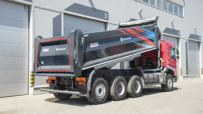 Самосвальный кузов выполнен из износостойкой и ударопрочной стали. Боковые стенки имеют толщину 5 мм., основание кузова – 8 мм. Конструкция кузова включает систему обогрева высокой эффективности. Элементы системы обогрева производятся из нержавеющей стали. Надстройка окрашена премиальными лакокрасочными материалами PPG.